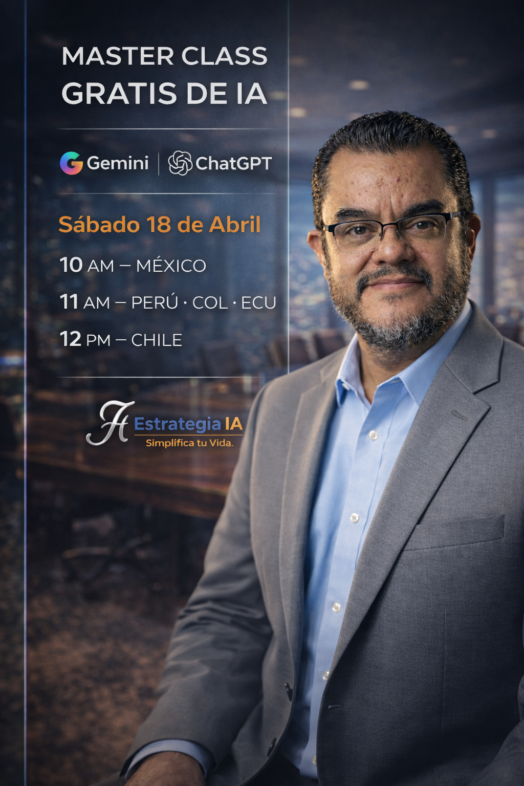 Aprende a usar la IA sin miedo. En solo 90 minutos te enseñaré a dominar a tus dos nuevos socios: ChatGPT y Gemini.